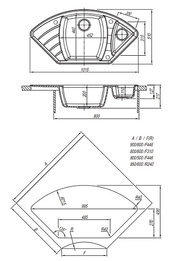 - комплектация: отводная арматура для двух разноуровневых чаш с выпусками 3,5 дюйма (D=90 мм) и переливом.
