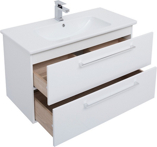 - тумба под раковину GIO 100 арт. 77.0105W: выдвижные фасады, встроенный органайзер в верхнем ящике, доводчики Hettich