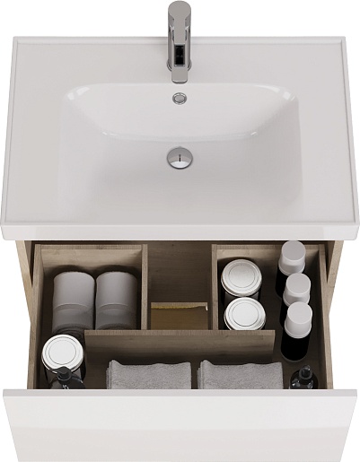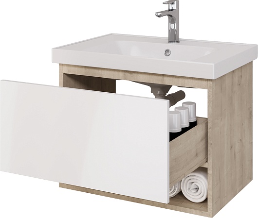 Dreja Тумба с раковиной Perfecto 70 подвесная, дуб/белый