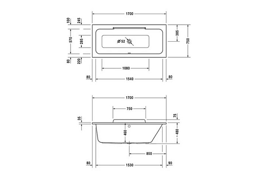 Duravit Акриловая ванна "DuraStyle 700297000000000" R 170х75