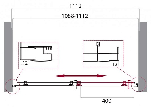 - Стекло 5 мм в двери, 4 мм в неподвижной стенке.