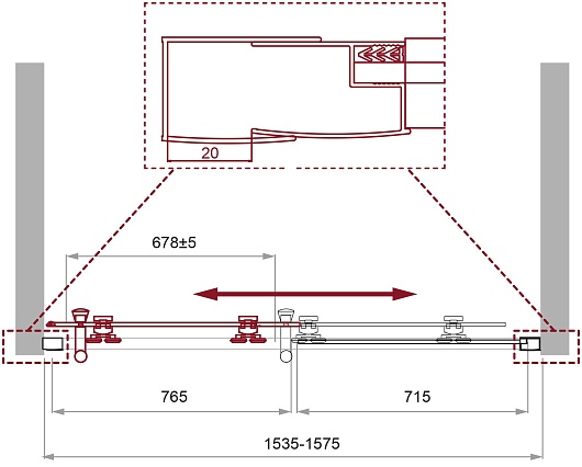 - Стекло 5 мм в двери, 4 мм в неподвижной стенке.