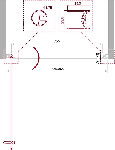 - Стекло 5 мм. C (прозрачное), P (матовое).
