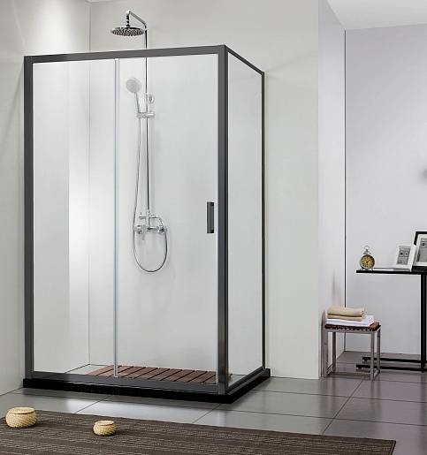 Aquatek Душевая дверь в нишу Ария 120x200 AQ ARI RA 12020BL профиль черный стекло прозрачное