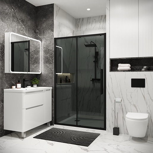 Душевая дверь в нишу Grossman Cosmo 110x195 профиль черный матовый стекло тонированное - арт. 1100.K33.02.110.21.10.