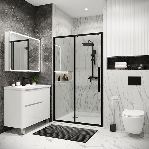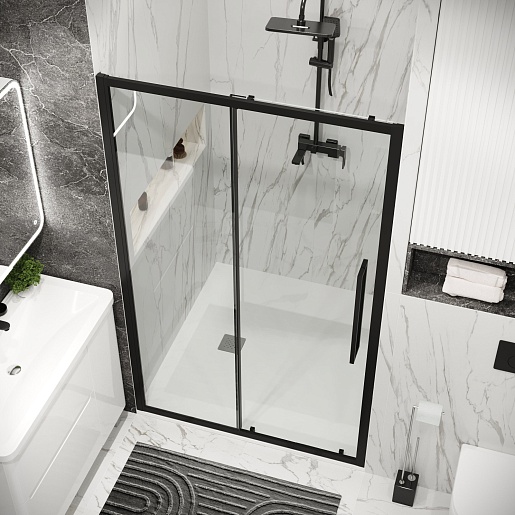 Душевая дверь в нишу Grossman Cosmo 120x195 профиль черный матовый стекло прозрачное - арт. 100.K33.02.120.21.00.