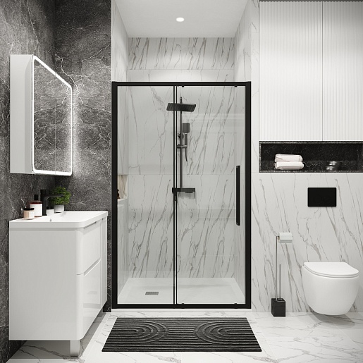 Душевая дверь в нишу Grossman Cosmo 130x195 профиль черный матовый стекло прозрачное - арт. 100.K33.02.130.21.00.