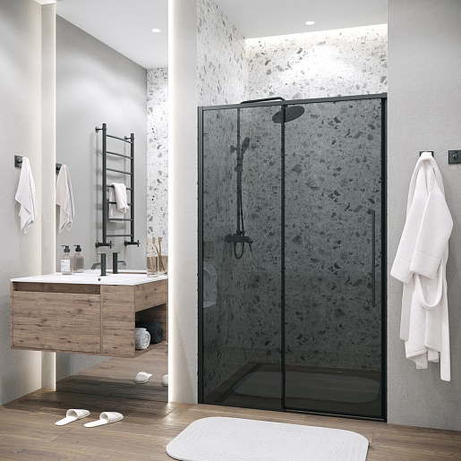 Душевая дверь в нишу Grossman Galaxy 110x195 профиль черный матовый стекло тонированное - арт. 100.K33.01.110.21.10.