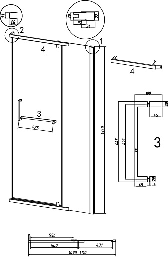 - Материал профиля: анодированный алюминиевый.