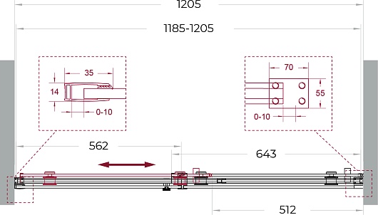 - Регулируемая ширина: от 118.5 до 120.5 см.