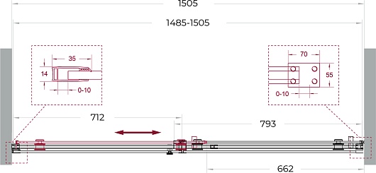 - Регулируемая ширина: от 148.5 до 150.5 см.