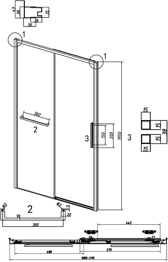 - Дверь раздвижная: одна неподвижная и одна сдвижная створки.