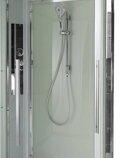 - Сборка без силикона (увеличивает срок службы, защищает от протечек), внутренняя сборка (облегчает установку и ревизию; позволяет установить в ограниченном пространстве и обойтись без демонтажа других сантехнических приборов), смеситель резьбовой (без хомутов). Съемный экран поддона (позволяет осуществлять подключение и ревизию сифона).Двойные металлические ролики дверей (распределение нагрузки на два ролика, увеличивают срок службы).
