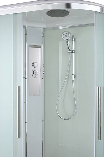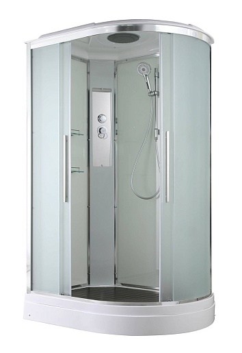 - В комплекте: душевая штанга, две полочки, тропический (верхний) душ, арома-лейка с витамином С (картридж съемный), полимерная вставка в поддон(имитация дерева), сифон, ручки дверей из нержавейки, двойные ролики.