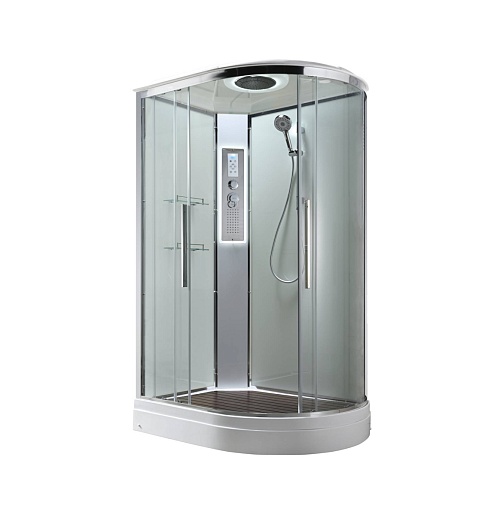 - В комплекте: душевая штанга, две полочки, тропический (верхний) душ, арома-лейка с витамином С (картридж съемный), полимерная вставка в поддон(имитация дерева), сифон, ручки дверей из нержавейки, двойные ролики, пульт сенсорный (Блютуз, LED подсветка, радио, вытяжка), гидромассаж спины.