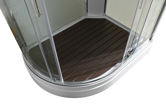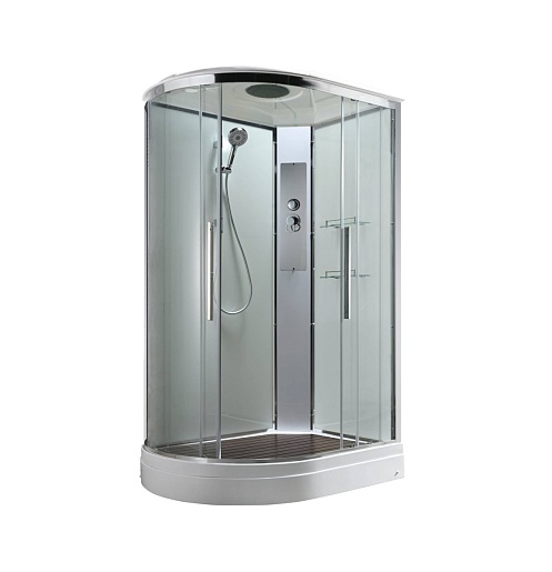 - В комплекте: душевая штанга, две полочки, тропический (верхний) душ, арома-лейка с витамином С (картридж съемный), полимерная вставка в поддон(имитация дерева), сифон, ручки дверей из нержавейки, двойные ролики.