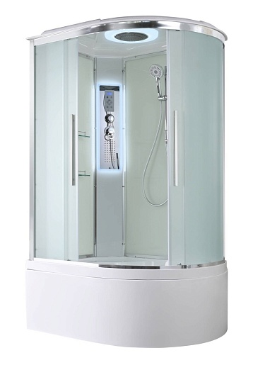 - В комплекте: душевая штанга, две полочки, тропический (верхний) душ, арома-лейка с витамином С (картридж съемный), полимерная вставка в поддон(имитация дерева), сифон, ручки дверей из нержавейки, двойные ролики, пульт сенсорный (Блютуз, LED подсветка, радио, вытяжка), гидромассаж спины.