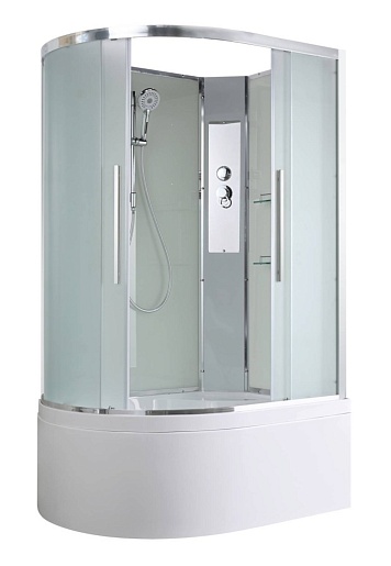 - В комплекте: душевая штанга, две полочки, арома-лейка с витамином С (картридж съемный), полимерная вставка в поддон(имитация дерева), сифон, ручки дверей из нержавейки, двойные ролики.