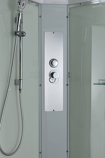 - Душевая штанга(позволяет регулировать по высоте ручную лейку), ручная арома-лейка с витамином С (картридж в комплекте, есть возможность замены или удаления картриджа), полочки(из стекла, с ограничителем), сифон с гидрозатвором.
