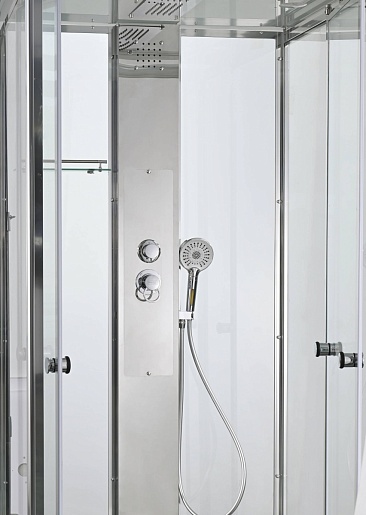 - Душевая штанга(позволяет регулировать по высоте ручную лейку), ручная арома-лейка с витамином С (картридж в комплекте, есть возможность замены или удаления картриджа), полочки(из стекла, с ограничителем), сифон с гидрозатвором.