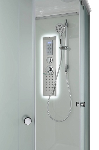 - В комплекте : душевая штанга, полочка, тропический (верхний) душ, арома-лейка с витамином С (картридж съемный), сенсорный пульт (блютуз, радио, LED подсветка в крыше и в центральной панели, вентилятор).