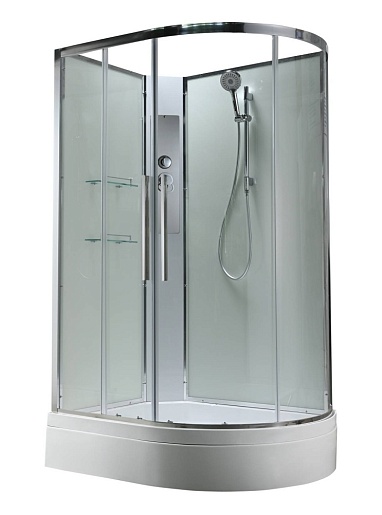 - В комплекте: душевая штанга, две полочки, арома-лейка с витамином С (картридж съемный), полимерная вставка в поддон(имитация дерева), сифон, ручки дверей из нержавейки, двойные ролики.