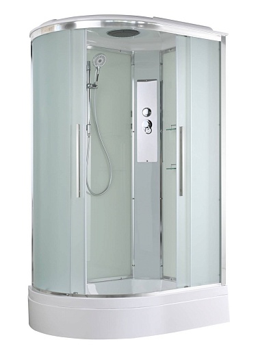 - В комплекте: душевая штанга, две полочки, тропический (верхний) душ, арома-лейка с витамином С (картридж съемный), полимерная вставка в поддон(имитация дерева), сифон, ручки дверей из нержавейки, двойные ролики.