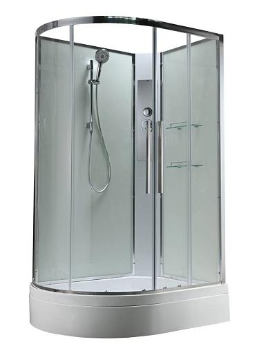 - В комплекте: душевая штанга, две полочки, арома-лейка с витамином С (картридж съемный), полимерная вставка в поддон(имитация дерева), сифон, ручки дверей из нержавейки, двойные ролики.