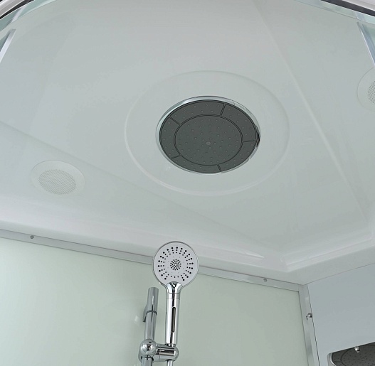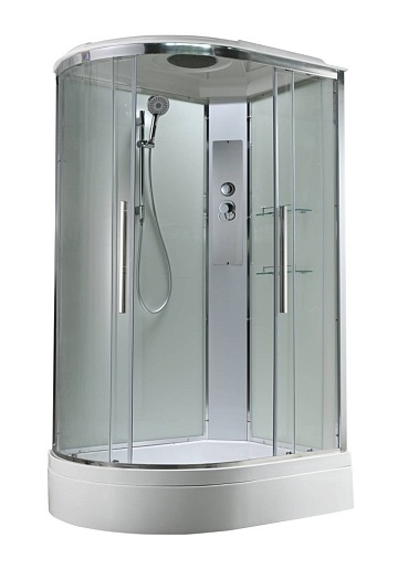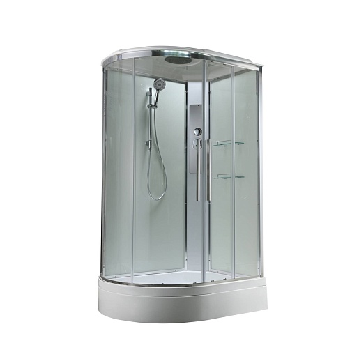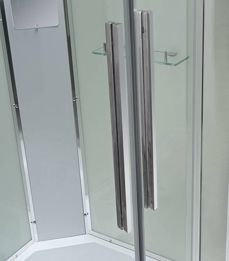 - В комплекте: душевая штанга, две полочки, тропический (верхний) душ, арома-лейка с витамином С (картридж съемный), полимерная вставка в поддон(имитация дерева), сифон, ручки дверей из нержавейки, двойные ролики.