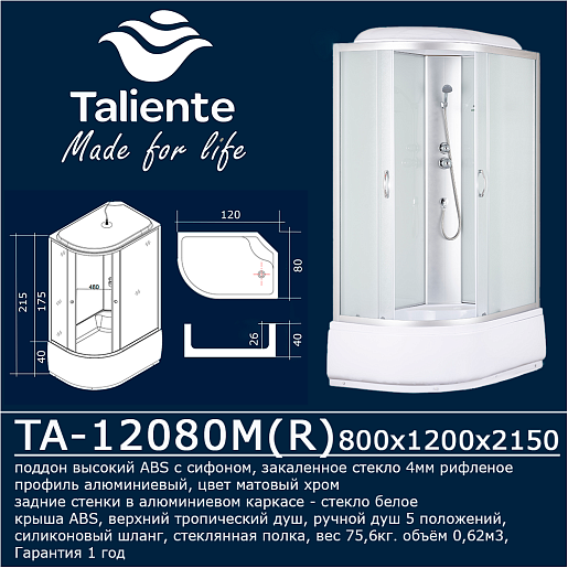 Taliente Душевая кабина 120/80 TA-12080M(R)
