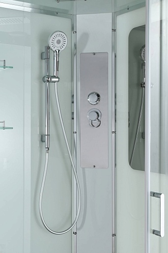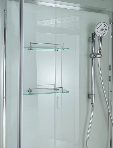 - Душевая штанга(позволяет регулировать по высоте ручную лейку), ручная арома-лейка с витамином С (картридж в комплекте, есть возможность замены или удаления картриджа), полочки(из стекла, с ограничителем), сифон с гидрозатвором.