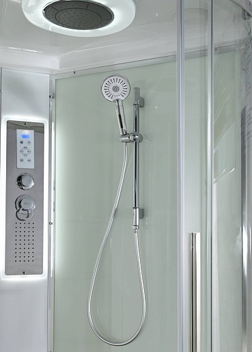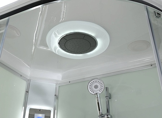 - В комплекте: душевая штанга, две полочки, тропический (верхний) душ, арома-лейка с витамином С (картридж съемный), полимерная вставка в поддон(имитация дерева), сифон, ручки дверей из нержавейки, двойные ролики, пульт сенсорный (Блютуз, LED подсветка, радио, вытяжка), гидромассаж спины.