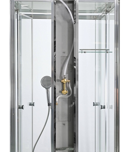 - Душевая штанга(позволяет регулировать по высоте ручную лейку), ручная арома-лейка с витамином С (картридж в комплекте, есть возможность замены или удаления картриджа), полочки(из стекла, с ограничителем), сифон с гидрозатвором.