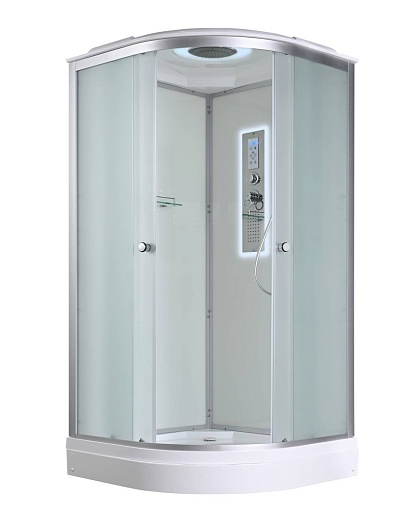 - В комплекте : душевая штанга, полочка, тропический (верхний) душ, арома-лейка с витамином С (картридж съемный), сенсорный пульт (блютуз, радио, LED подсветка в крыше и в центральной панели, вентилятор).