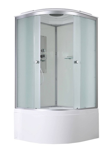 - Сборка без силикона (увеличивает срок службы), внутренняя сборка (облегчает установку и ревизию, позволяет установить душевую кабину в ограниченном пространстве),смеситель резьбовой (без хомутов), съемный экран поддона (позволяет осуществлять ревизию сифона), цвет профиля матовый хром.