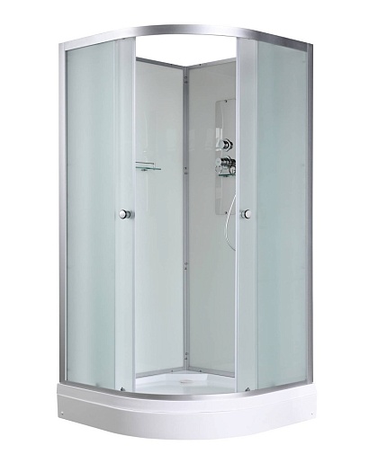 - Сборка без силикона (увеличивает срок службы), внутренняя сборка, смеситель резьбовой (без хомутов), съемный экран поддона, цвет профиля матовый хром.