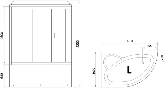 - Размер (ШxГxВ): 1700 x 1000 x 2250 мм.