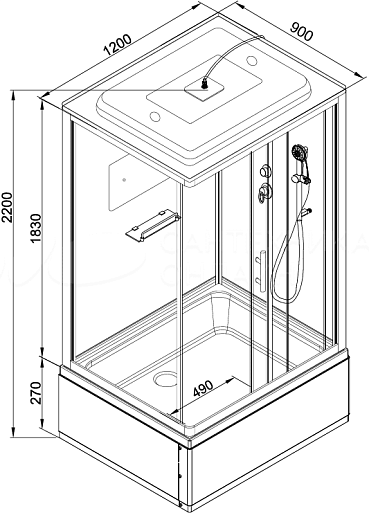 Душевая кабина Deto D 120x90 D229S LED - арт. D229S LED.