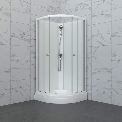 В комплекте: душевая кабина, поддон, каркас, сифон.