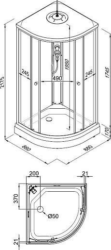 - Высота поддона, 17 см.