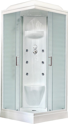 В комплекте: душевая кабина, сифон, смеситель, ручной душ.