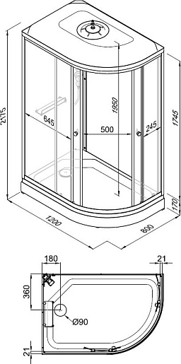 В комплекте: сифон, душевой набор с лейкой на гибком шланге и верхним душем, поддон.