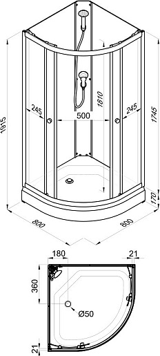 - Высота поддона: 17 см.