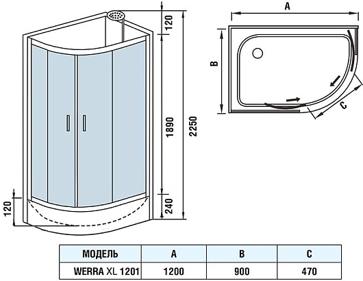 Душевая кабина WeltWasser Werra XL 1201 L - арт. 10000014051.