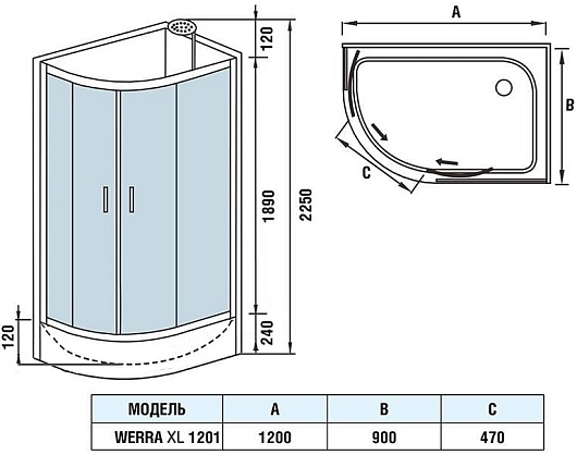 Душевая кабина WeltWasser Werra XL 1201 R - арт. 10000014052.