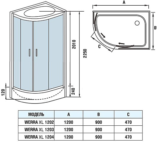 Душевая кабина WeltWasser Werra XL 1202 R - арт. 10000014054.