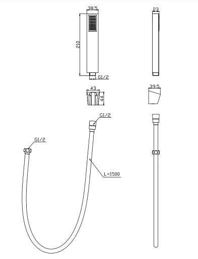 - Оснащение: держатель, душевой шланг PVC 150 см, ручной душ.