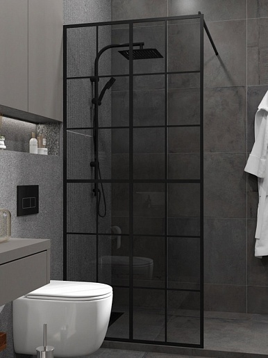 - тонированное стекло и чёрный алюминиевый профиль.