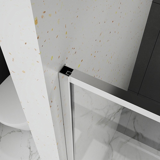- Его ключевая особенность — прозрачное стекло толщиной 6 мм, которое визуально не утяжеляет интерьер, пропускает максимум света и подчеркивает стиль санузла.