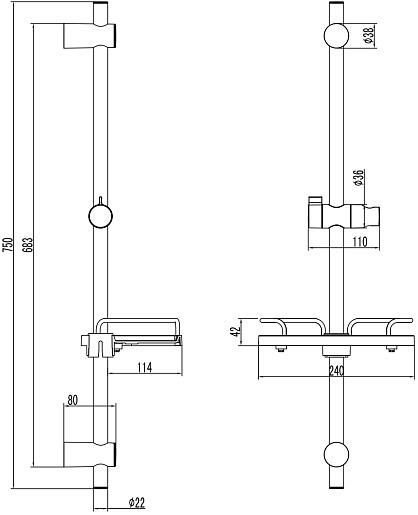 Комплектация: штанга, держатель лейки, полочка, крепления.